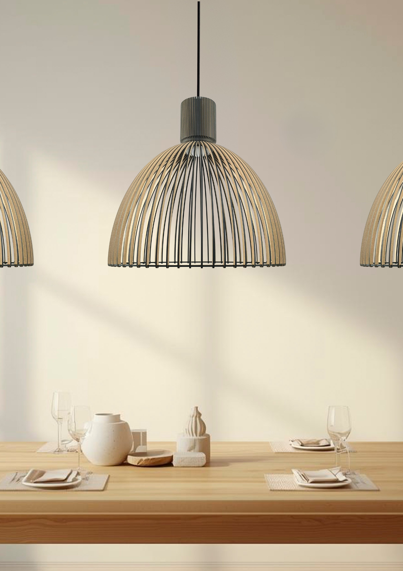De Ensenada Lujo Middel is voorzien van 62 lamellen, elk 4 mm dik, wat zorgt voor een speels en dynamisch lichtspel.