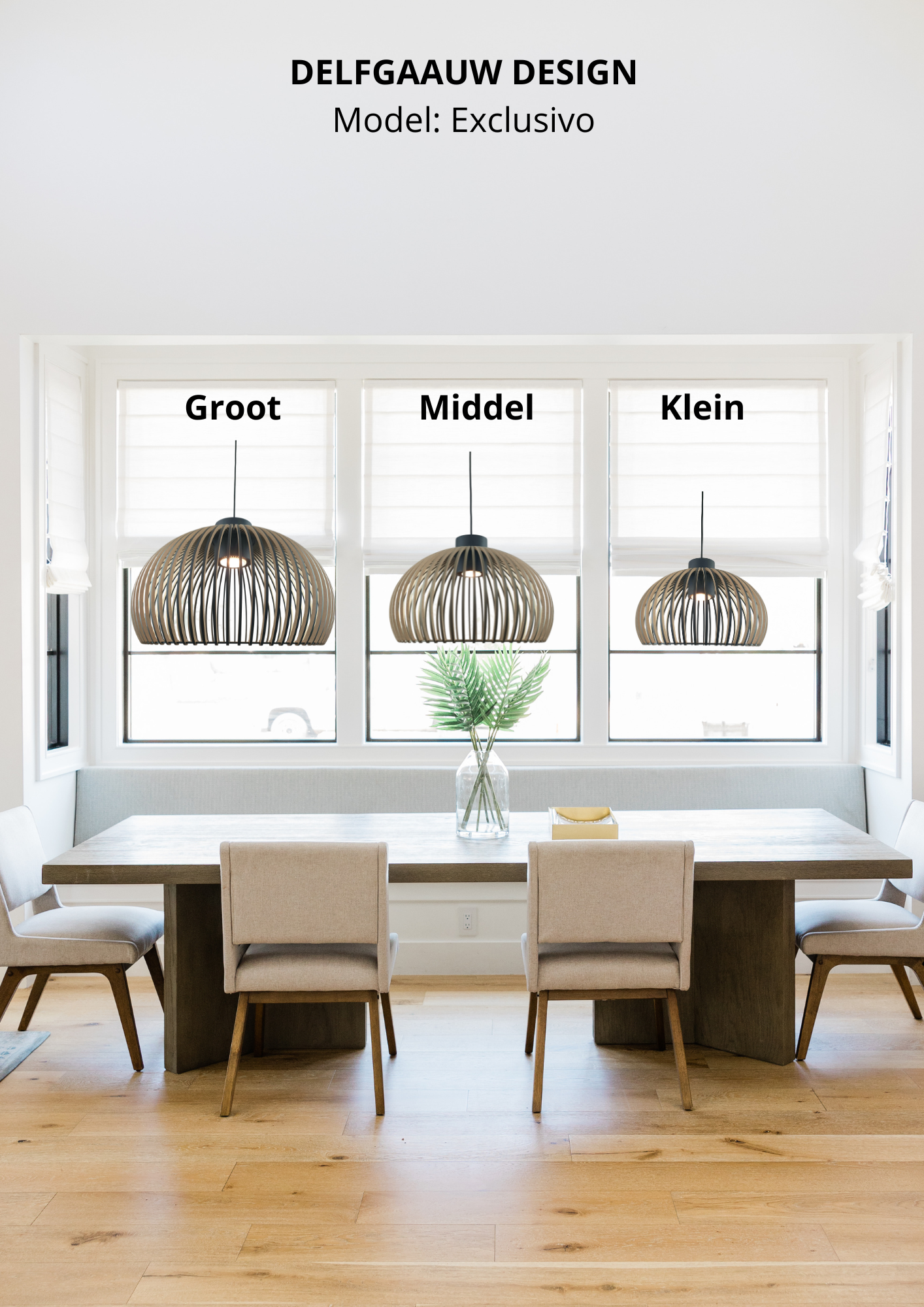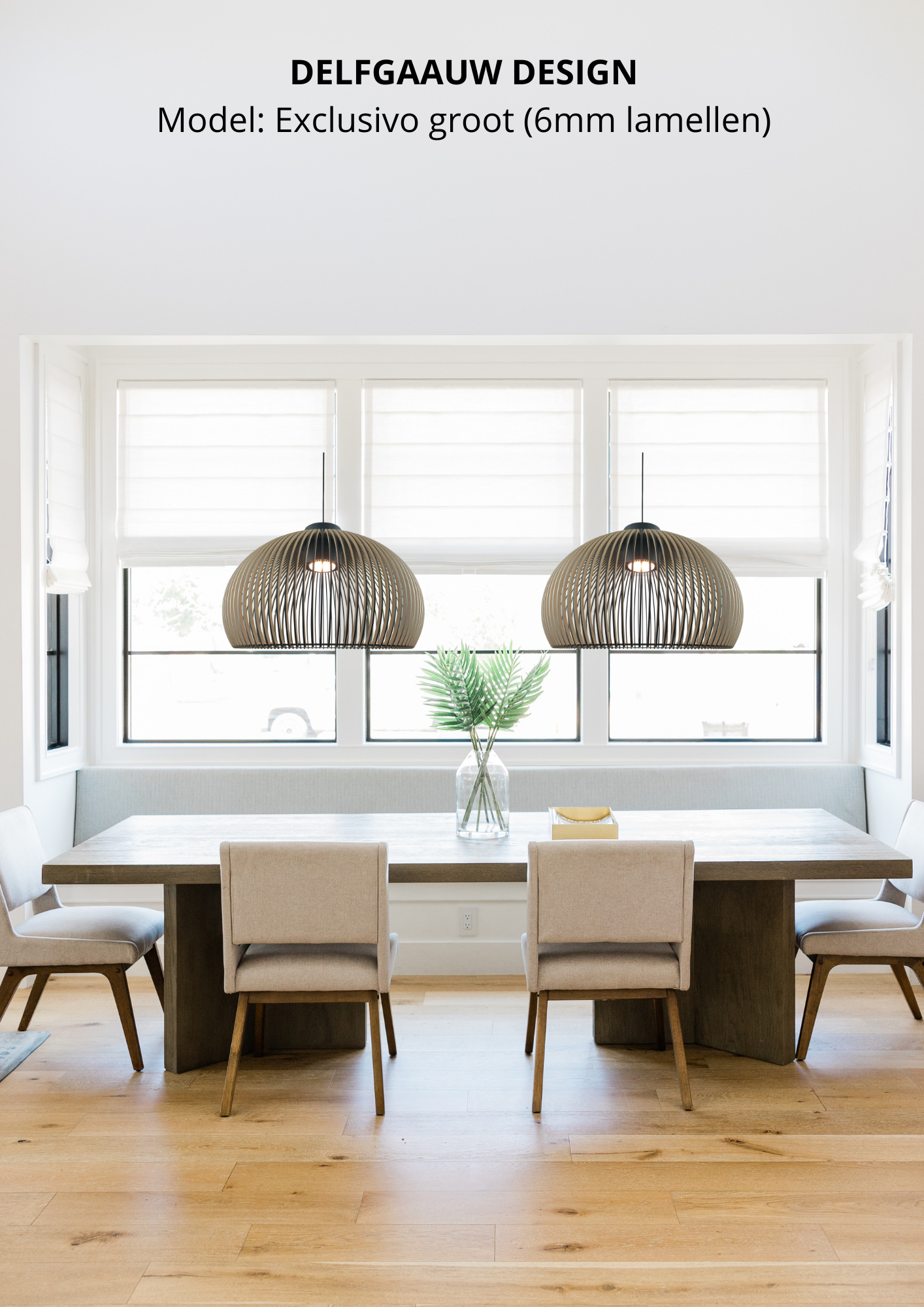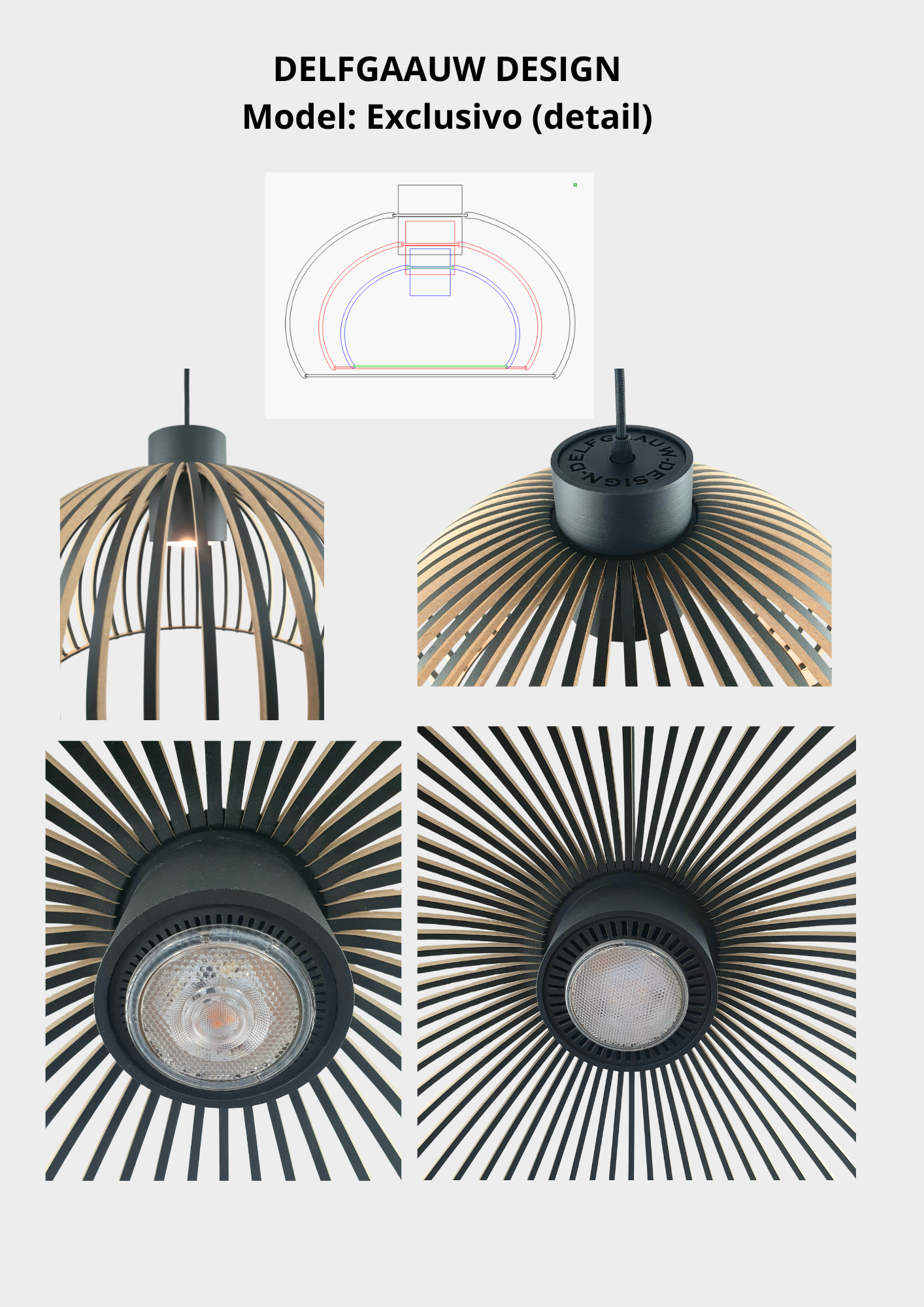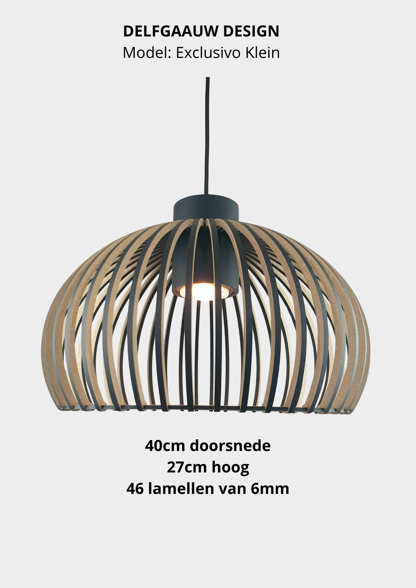Naast de standaard versie is de Exclusivo ook beschikbaar in de Lujo uitvoering. Deze luxe versie onderscheidt zich door de dunner gesneden lamellen van 4 mm, wat een verfijnde uitstraling geeft en de esthetiek van de lamp naar een hoger niveau tilt.