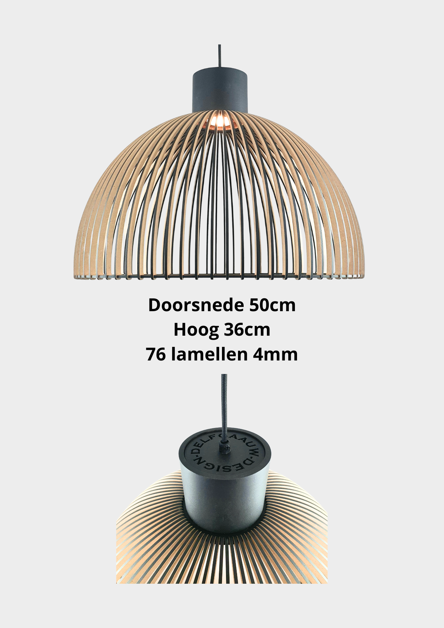 Materiaal en constructie: De lamp is vervaardigd uit lamellen van 4 mm dik, met in totaal 76 stuks. Deze hoogwaardige materialen zorgen voor duurzaamheid en een moderne uitstraling.