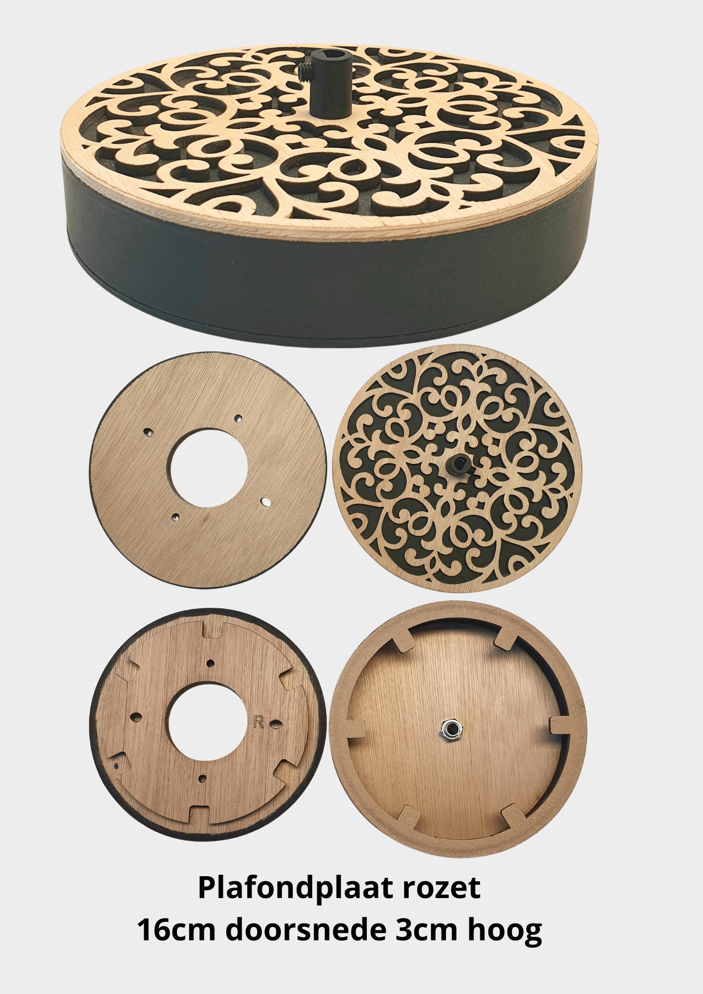 Deze plafondplaat is ontworpen voor diegenen die houden van een tijdloze, elegante uitstraling in hun interieur. Met een doorsnede van 16 cm en een hoogte van 3 cm, past deze decoratieve plaat subtiel in elk klassiek of traditioneel geïnspireerd plafond. Verkrijgbaar in drie verschillende rozet designs, biedt Olivios Design de mogelijkheid om jouw persoonlijke stijl tot uiting te laten komen.