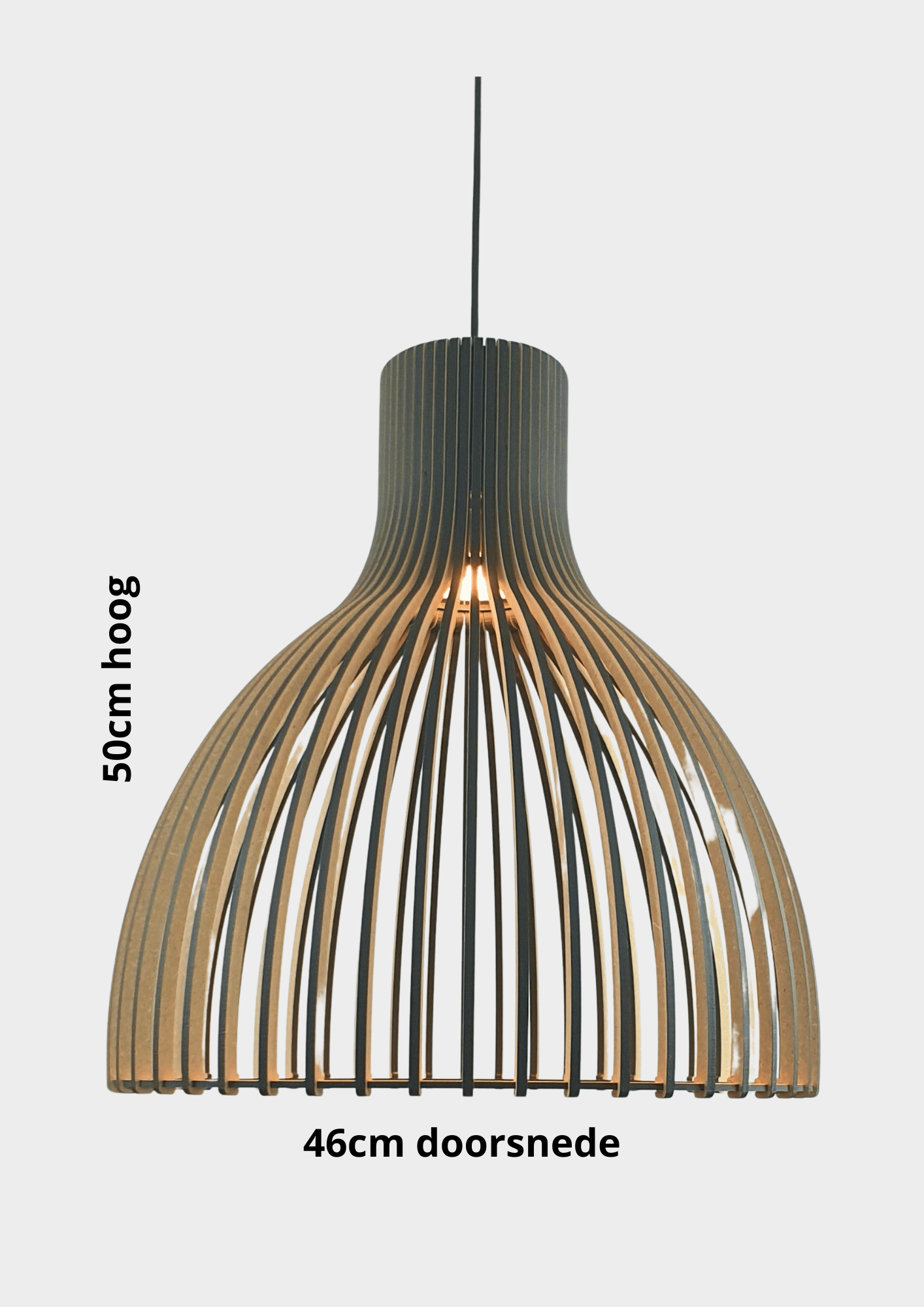 De Paradoja is volledig met de hand geproduceerd in onze Nederlandse werkplaats. We gebruiken hiervoor, 6en 4mm dik MDF 50 ribben wat niet alleen duurzaam is, maar ook een unieke uitstraling heeft die past bij elk interieur. Dankzij de zorgvuldige productie heeft deze lamp een warme en gezellige uitstraling, waardoor hij perfect past in elke kamer in huis.