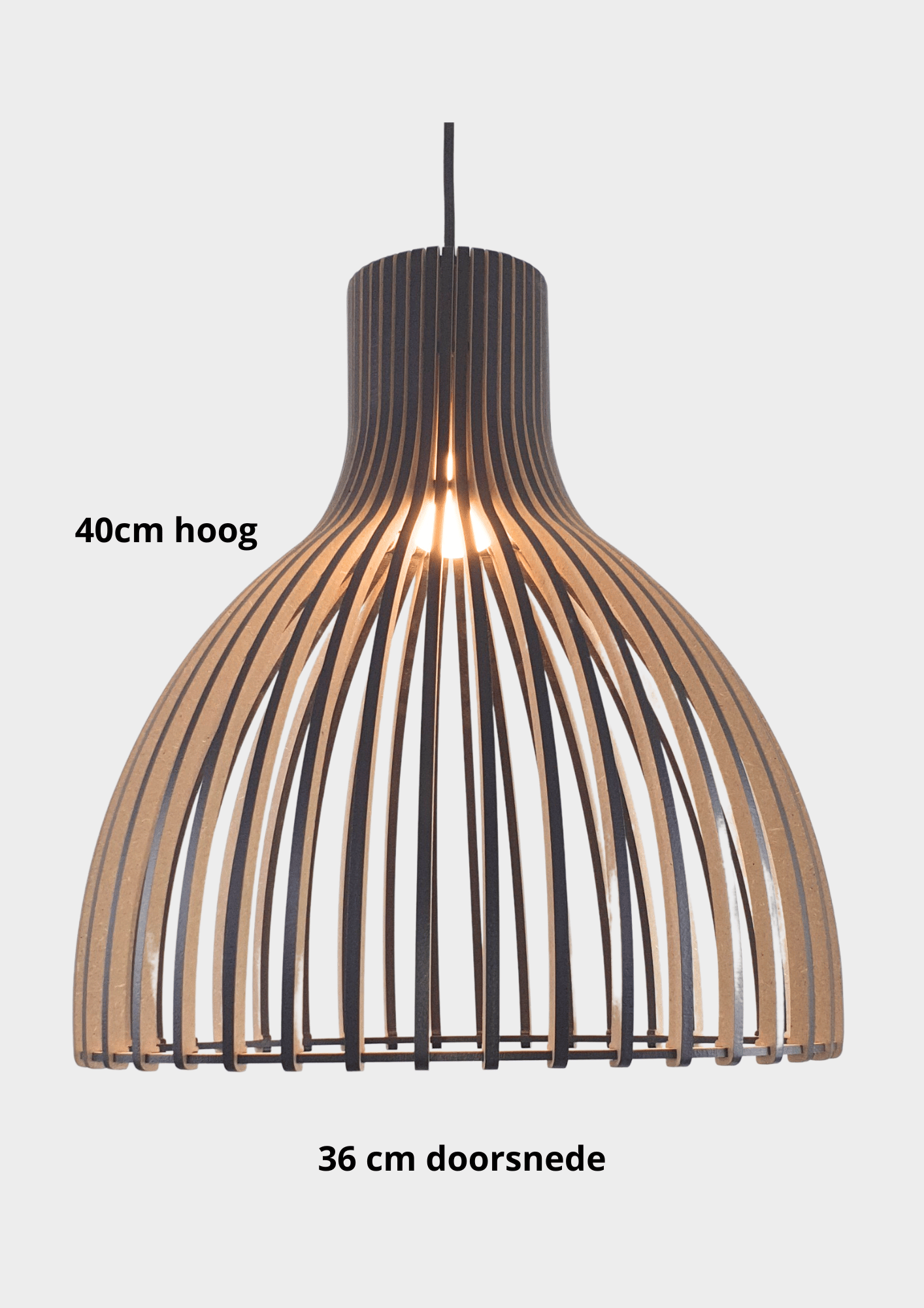 De Paradoja is volledig met de hand geproduceerd in onze Nederlandse werkplaats. We gebruiken hiervoor, 6en 4mm dik MDF 42 ribben wat niet alleen duurzaam is, maar ook een unieke uitstraling heeft die past bij elk interieur. Dankzij de zorgvuldige productie heeft deze lamp een warme en gezellige uitstraling, waardoor hij perfect past in elke kamer in huis.